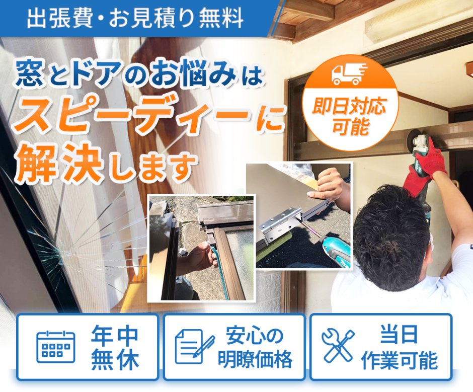 劣化の少ないドアであれば、作業時間は1時間ほど、劣化の激しいドアは2時間作業になります。あまりに劣化が激しいドアの場合は、作業ができないこともありますが、8割は即日修理できることがほとんどです。